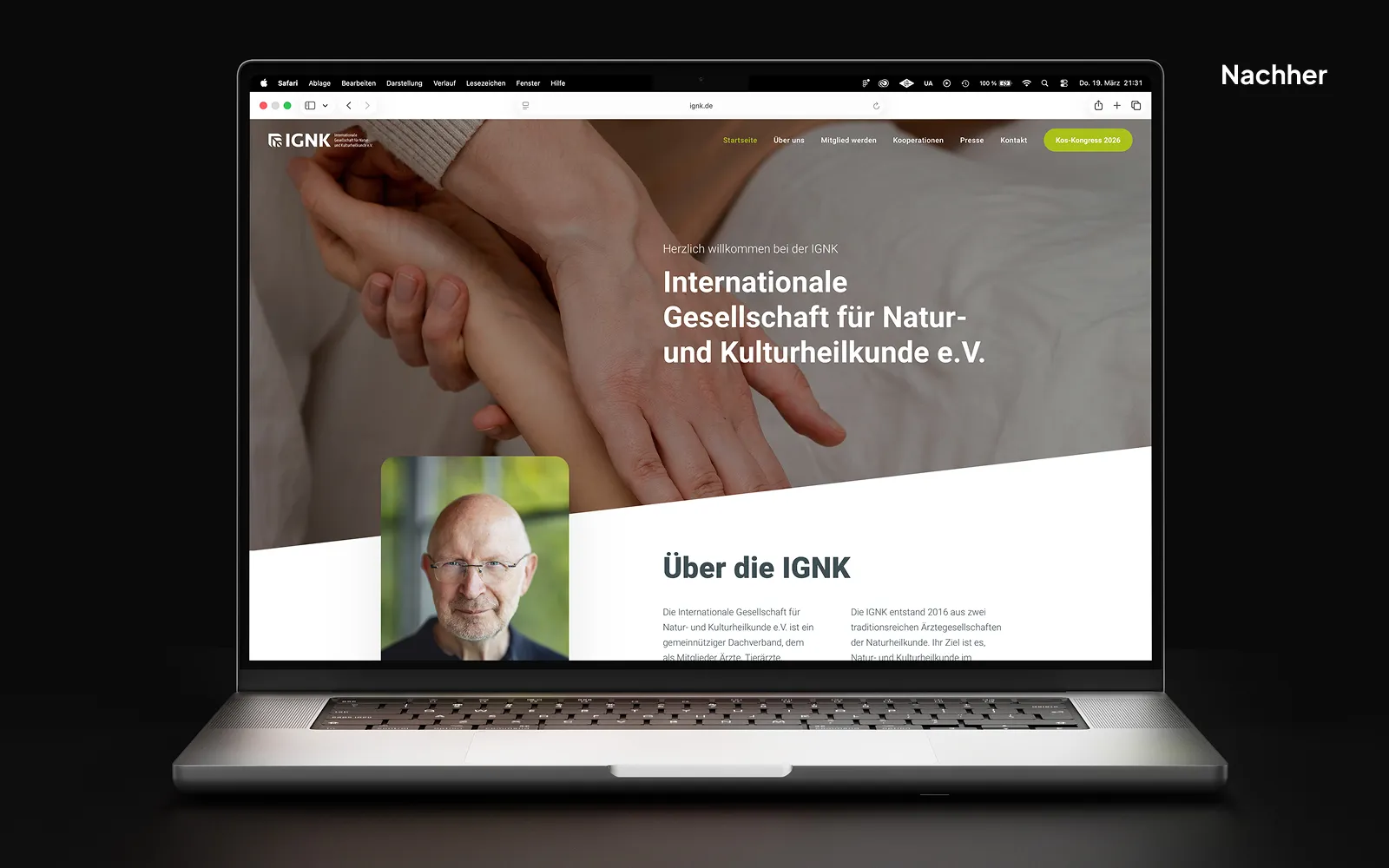 Der vorherige Auftritt (siehe oben) reproduzierte visuelle Klischees aus dem alternativmedizinischen Kontext, etwa durch Spiralmotive und eine typische Farbwelt. Diese Bildsprache stand im Widerspruch zu dem, was die IGNK ist: Eine bedeutende medizinische Fachgesellschaft, die sich für die Verbindung von Schulmedizin und Naturheilkunde engagiert.